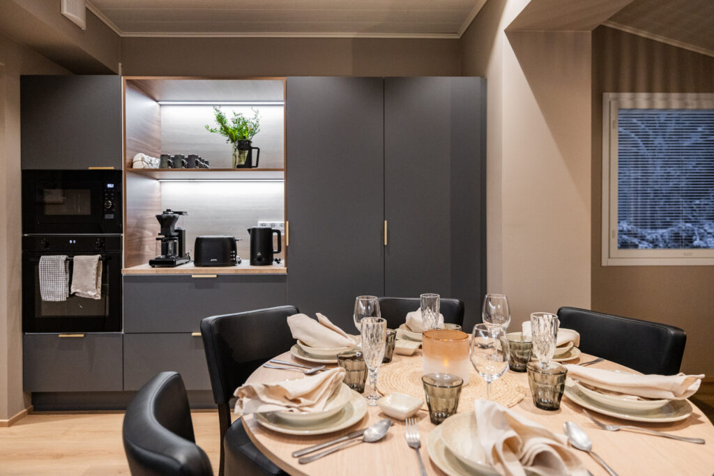 - Tilava, täysin varusteltu keittiö-olohuone