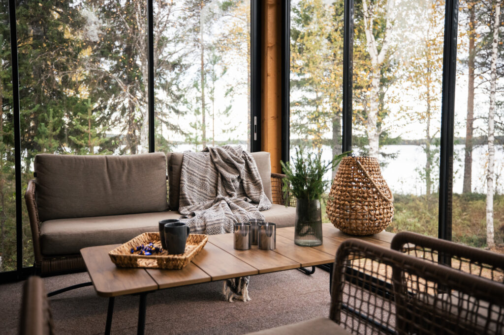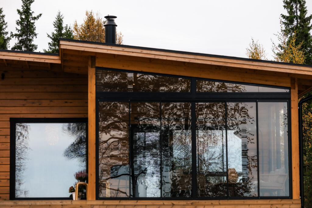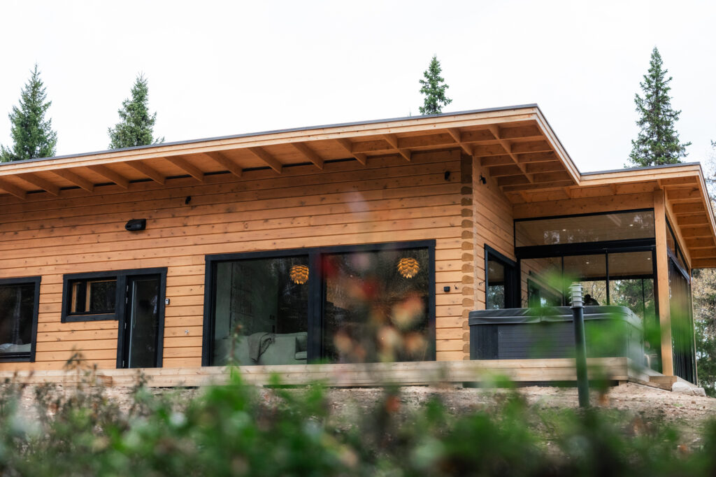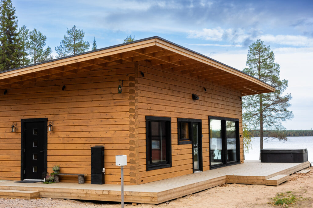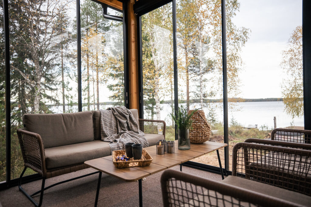 - Mökissä ilmastointi, äänieristys, ulkotakka, terassi ja parveke järvinäköalalla sekä yksityinen ranta-alue
