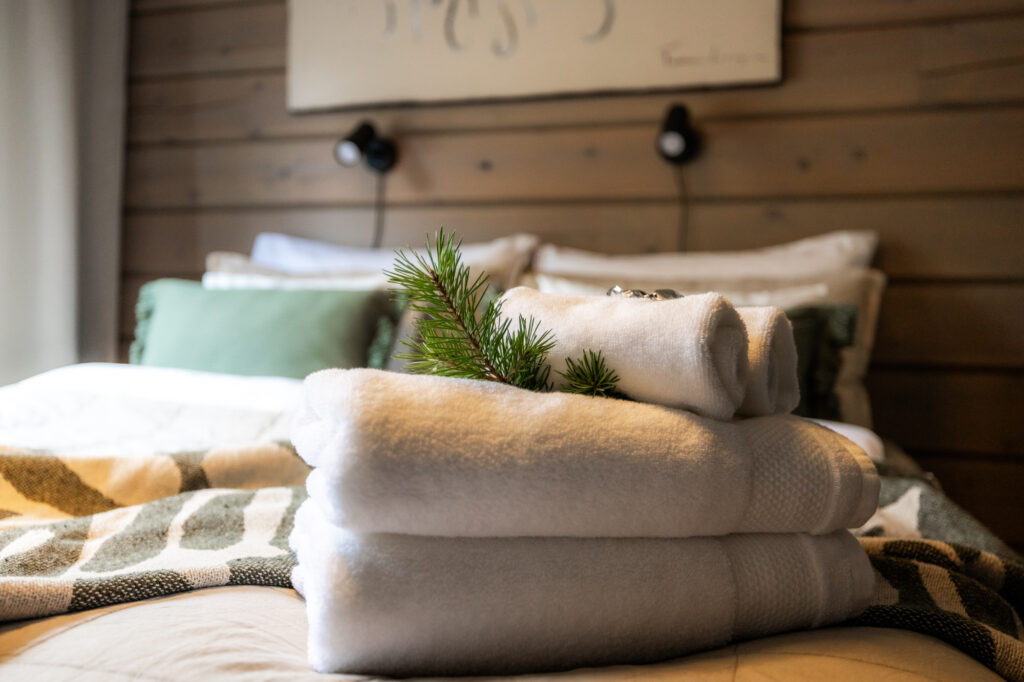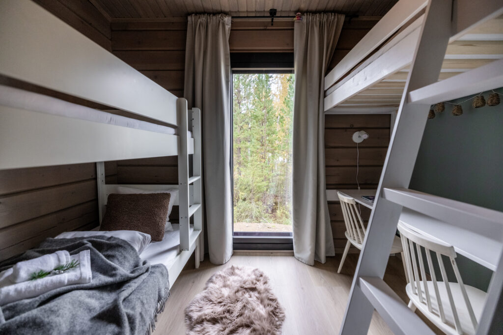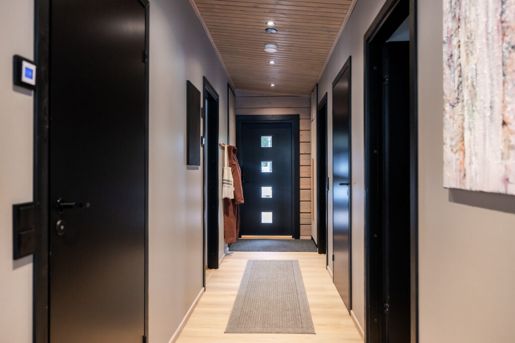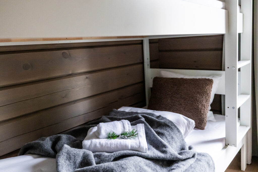 - Ensimmäisessä makuuhuoneessa 180cm King-vuode, toisessa makuuhuoneessa 160cm Queen-vuode ja kolmannessa makuuhuoneessa kerrossängyt (2x 90cm vuodetta ja 1x 90cm vuode)