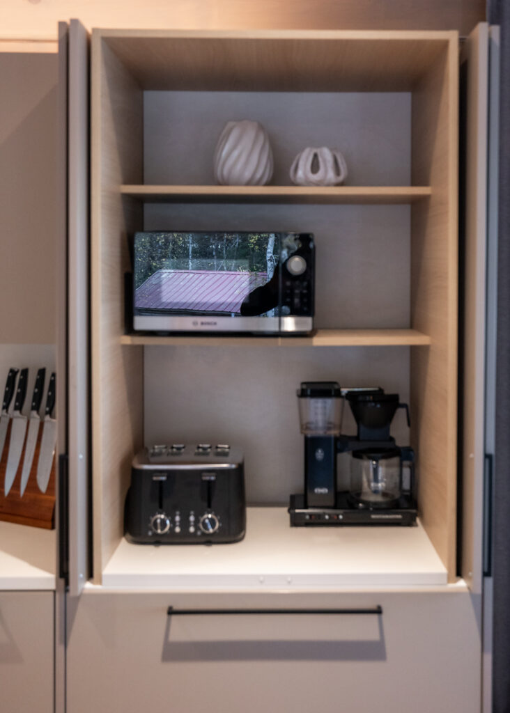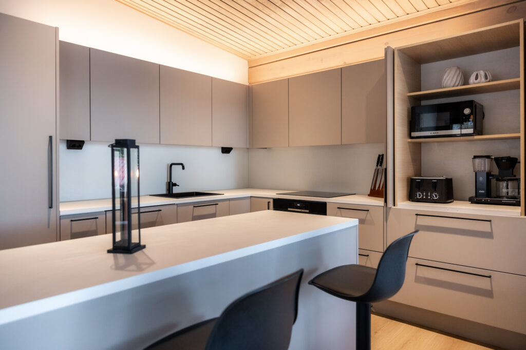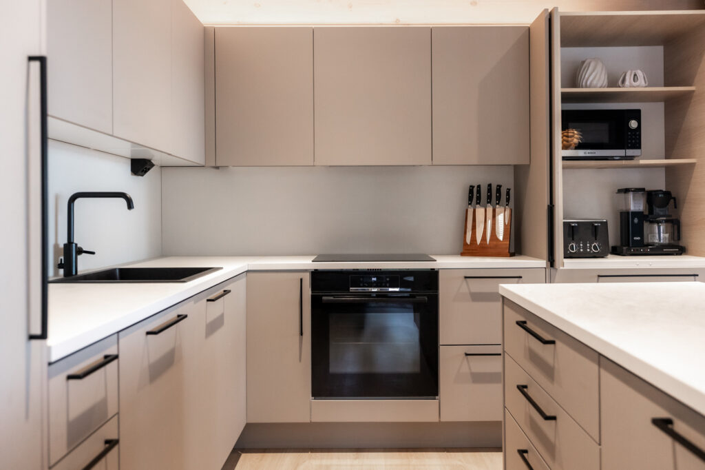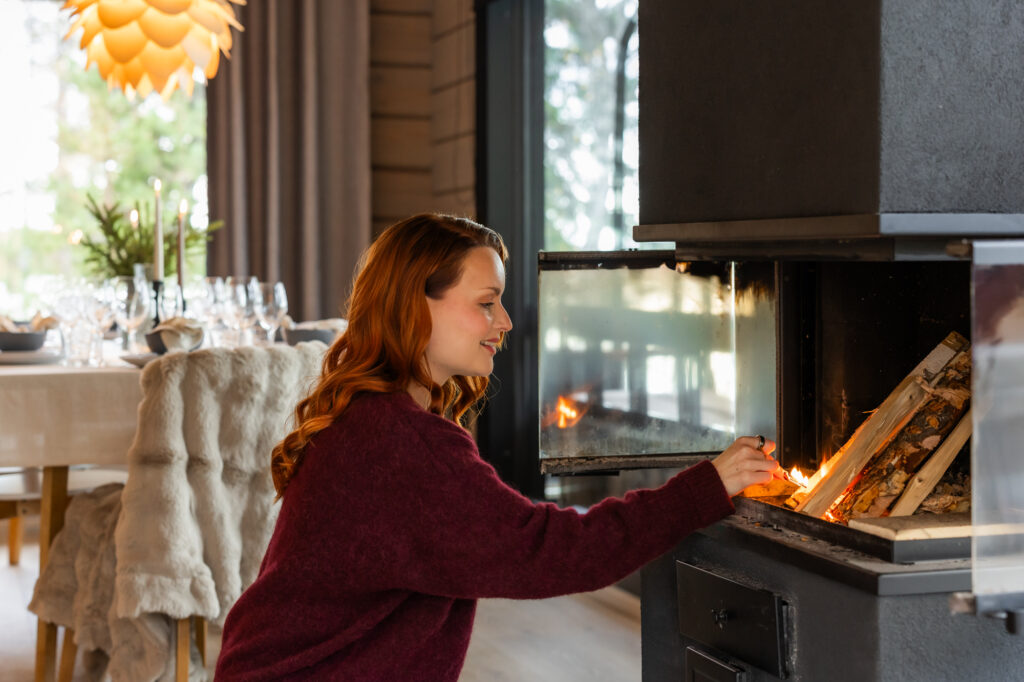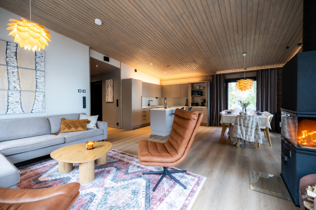 - Olohuoneessa taulu-tv ja takka, keittiössä kattavat ruoanlaitto- ja ruokailuvälineet, mikroaaltouuni, jääkaappi, liesi, uuni ja astianpesukone