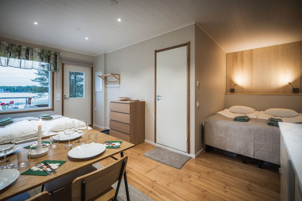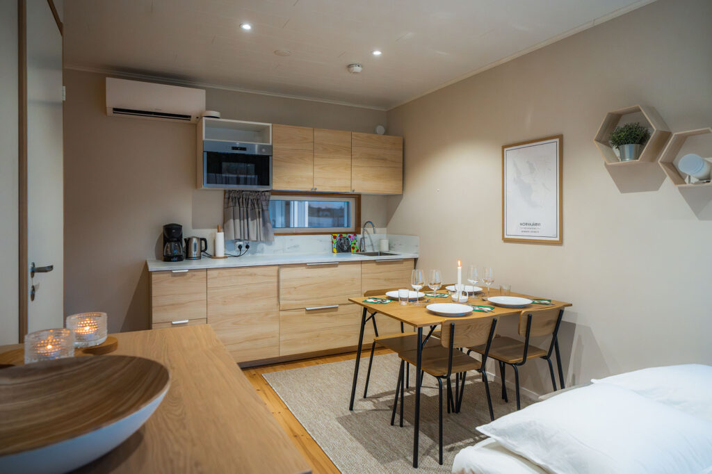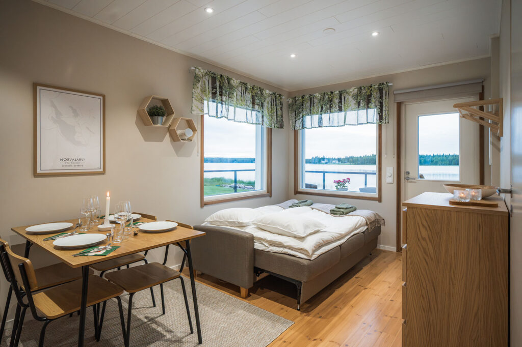 - 25 m2 rantahuvilan yksiö, jossa on keittokomero, sauna ja ulkoporeamme